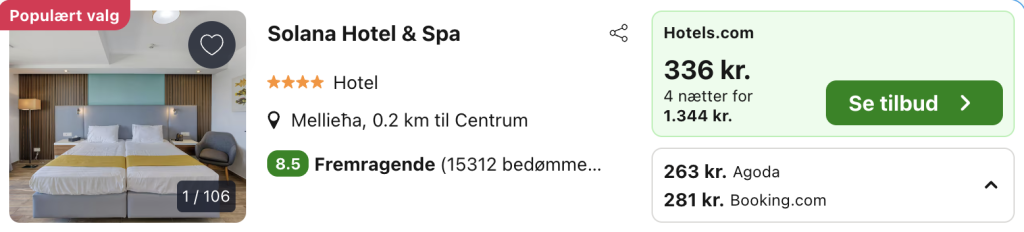 Hvis rejsen er med “Vis rejse” link, så er der tale om en pakkerejse, hvor fly og hotel bestilles på en gang.