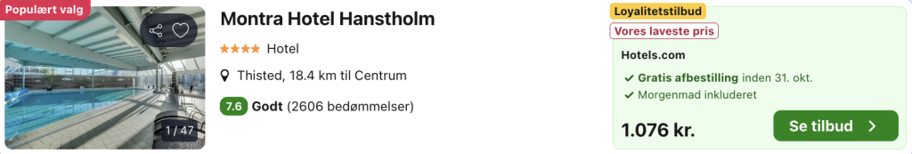 Bemærk: Der kan være mindre forskelle i prisen på mobil og pc. Undersøg med fordel, hvor det er billigst inden bestilling. Rejs365 er ikke et rejsebureau, men en rejseside, der finder gode tilbud! – Vi modtager kommission, men det påvirker ikke din pris! Læs mere her |
