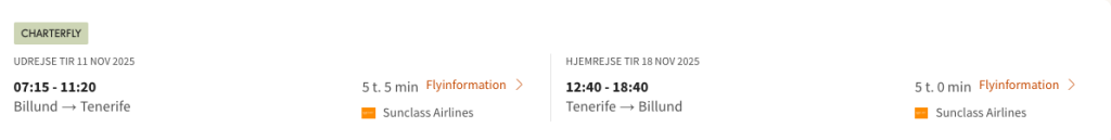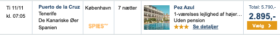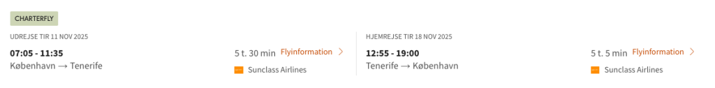 Hvis rejsen er med “Vis rejse” link, så er der tale om en pakkerejse, hvor fly og hotel bestilles på en gang.