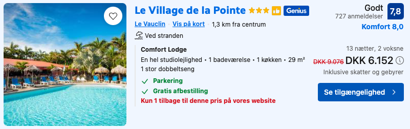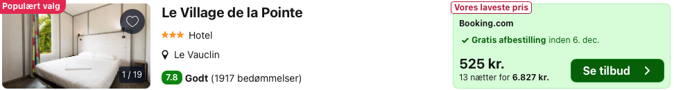 Vælg booking.com på trivago og log ind / opret en gratis bruger. Derved opnås den bedste pris.