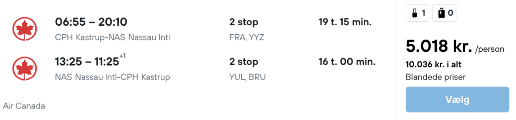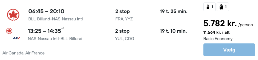 På vores flysøgemaskine har vi fundet billige billetter fra København og Billund til Bahamas.