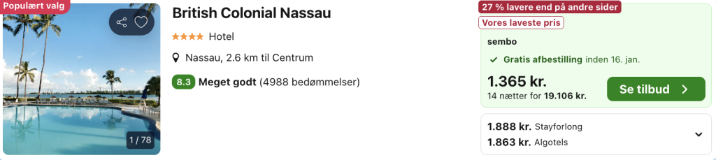2 uger på Bahamas for kun 14.571,- per person inkl. fly og flot 4-stjernet resort med beliggenhed på stranden!