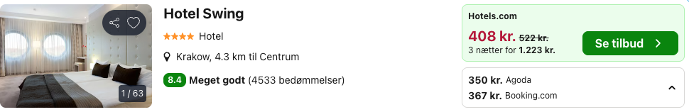 Hvis rejsen er med “Vis rejse” link, så er der tale om en pakkerejse, hvor fly og hotel bestilles på en gang.