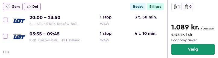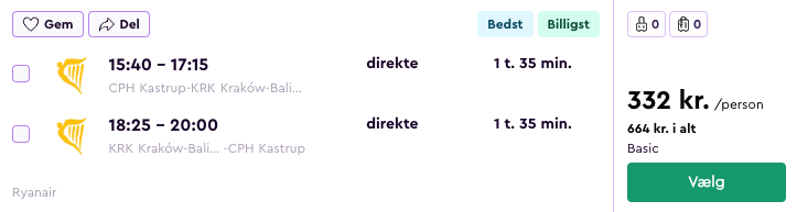 På vores flysøgningsmaskine har vi fundet billige flybilletter fra Billund og København til Krakow: