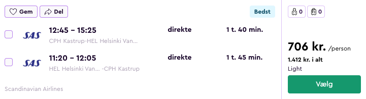 På vores flysøgningsmaskine har vi fundet billige billetter fra København til Helsinki: