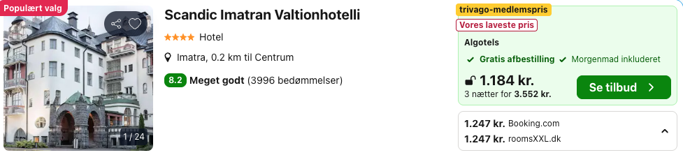 4 dages forlænget weekend på unikt 4-stjernet slotshotel i Finland for kun 2.907,- inkl. morgenmad, fly og leje af bil!