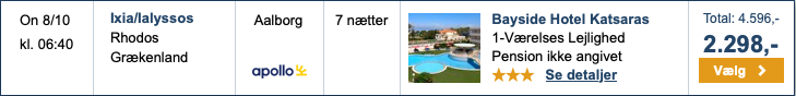 Hos Travelmarket har vi fundet gode tilbud med Apollo fra Aalborg til Rhodos: