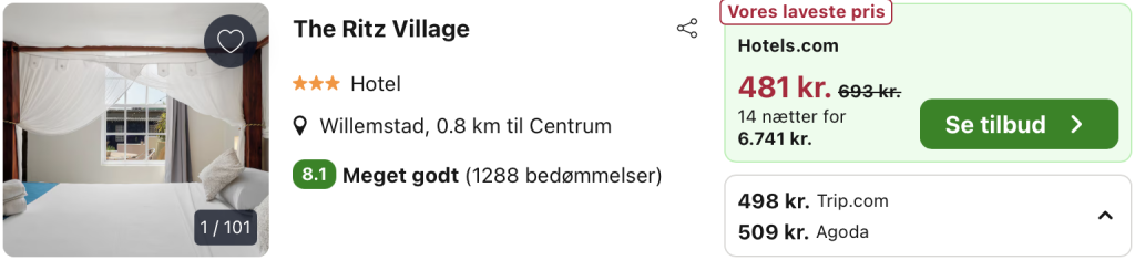 Bemærk: Der kan være mindre prisforskelle på mobil og pc. Undersøg med fordel, hvor det er billigst inden bestilling. Husk at logge ind / oprette en gratis bruger på trivago samt hos hoteludbyderen. Derved opnås den bedste pris! Rejs365 er ikke et rejsebureau, men en rejseside, der finder gode tilbud! – Vi modtager kommission, men det påvirker ikke din pris! Læs mere her |