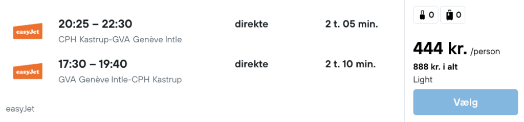 Flyprisen inkluderer en lille taske, men bagage kan tilkøbes.