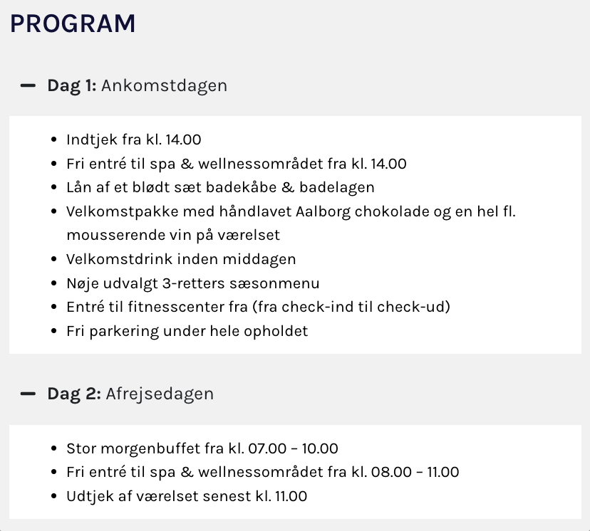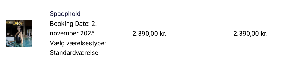 Vi har taget udgangspunkt i et spaophold fra den 2. – 3. november. Der er flere forskellige datoer.