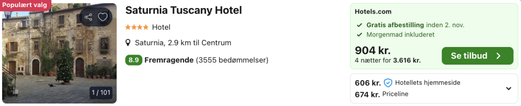 5 dage ved Saturnia for kun 1.549,- per person inkl. fly og flot 4-stjernet hotel med smuk beliggenhed i Toscana!