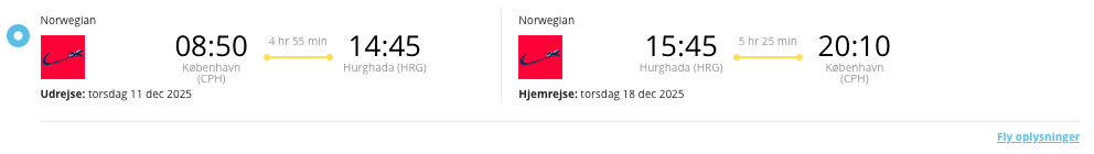Hvis rejsen er med “Vis rejse” link, så er der tale om en pakkerejse, hvor fly og hotel bestilles på en gang.