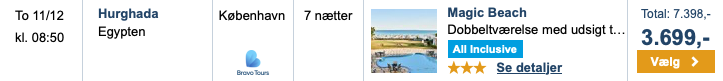 På Travelmarket har vi fundet et godt tilbud med Bravo Tours fra København og Billund til Hurghada.