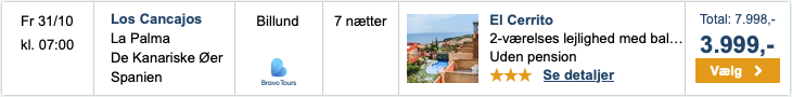 På Travelmarket har vi fundet et godt tilbud med Bravo Tours fra København og Billund til La Palma.