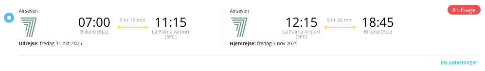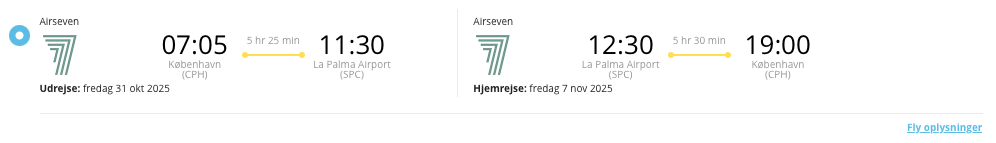 Hvis rejsen er med “Vis rejse” link, så er der tale om en pakkerejse, hvor fly og hotel bestilles på en gang.