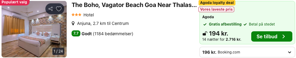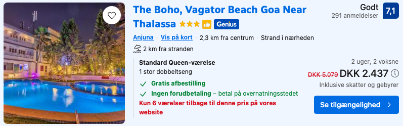 Vælg booking.com på trivago og log ind / opret en gratis bruger. Derved opnås den bedste pris.