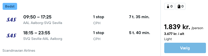 Flyprisen inkluderer kun en lille taske, men bagage kan tilkøbes.