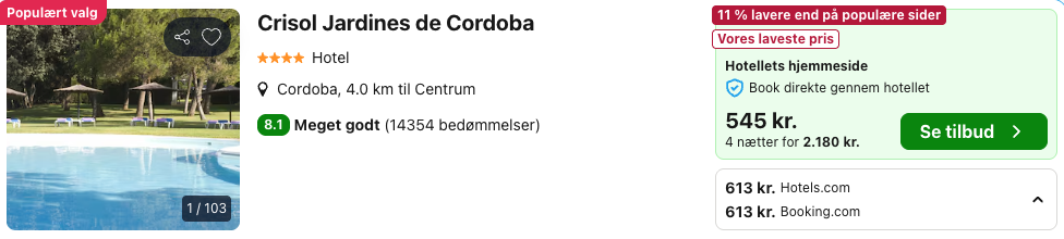 Bemærk: Husk at lade søgningen på fly og hotel blive helt færdig. Vælg “Vores laveste pris” på trivago for at opnå den bedste pris på hotellet.