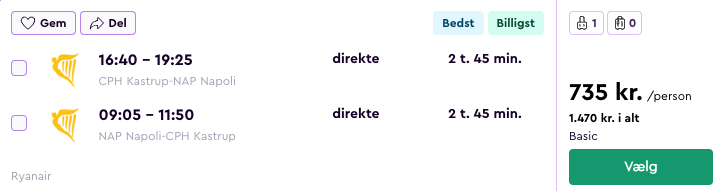 På vores flysøgemaskine har vi fundet billige flybilletter fra København til Napoli: