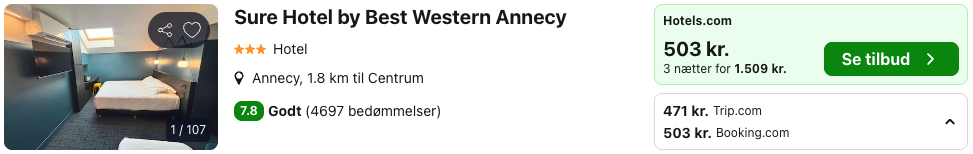 Forlænget weekend i Annecy for kun 1.159,- per person inkl. fly og godt 3-stjernet hotel med god beliggenhed!