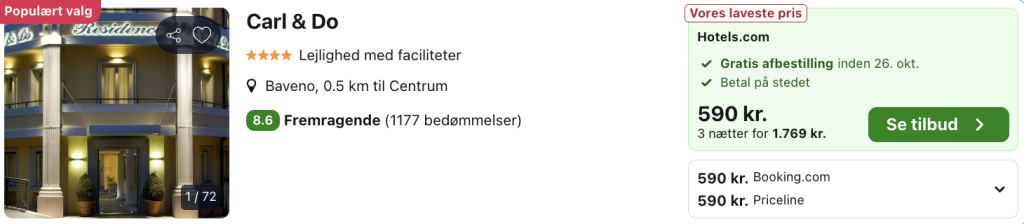 Vi har taget udgangspunkt i det 4-stjernede lejlighedshotel Carl & Do, der modtager fremragende anmeldelser af de tidligere gæster og bl.a. byder på pæne lejligheder og god beliggenhed tæt på Lago Maggiore.
