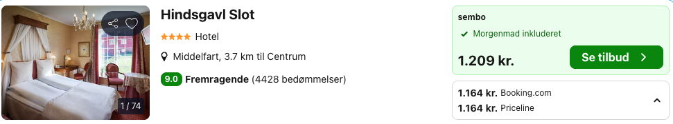 Bemærk: Den samlede pris for opholdet er 1.164,- for 2 personer i et dobbeltværelse, hvilket svarer til 582,- per person.