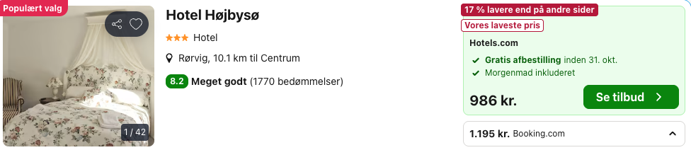 ![]() Bemærk: Den samlede pris for opholdet er 986,- for 2 personer i et dobbeltværelse, hvilket er 492,- per person. Rejs365 er ikke et rejsebureau, men en rejseside, der finder gode tilbud! – Vi modtager kommission, men det påvirker ikke din pris! Læs mere her