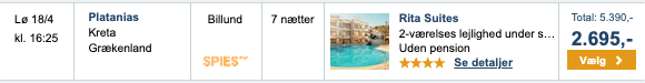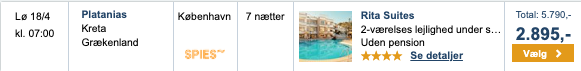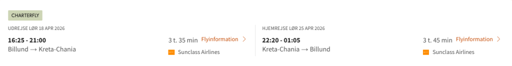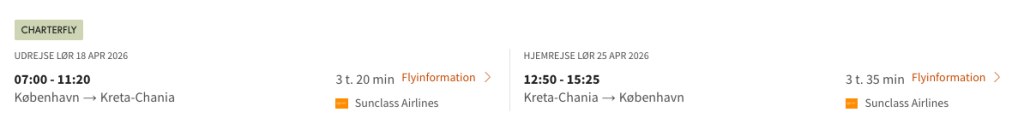 Hvis rejsen er med “Vis rejse” link, så er der tale om en pakkerejse, hvor fly og hotel bestilles på en gang.