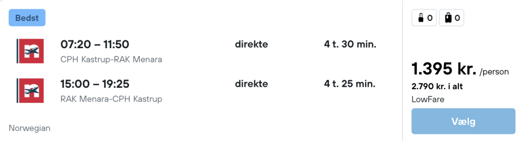 På vores flysøgemaskine har vi fundet billige flybilletter fra København til Marrakech: