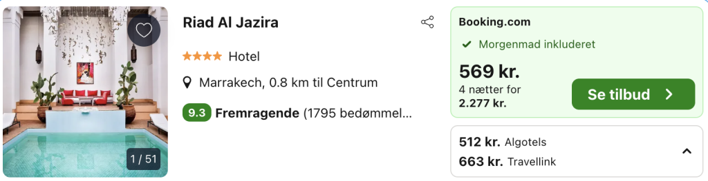 Hvis rejsen er med “Vis rejse” link, så er der tale om en pakkerejse, hvor fly og hotel bestilles på en gang.
