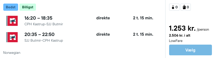 Flyprisen inkluderer kun en lille taske, men bagage kan tilkøbes.