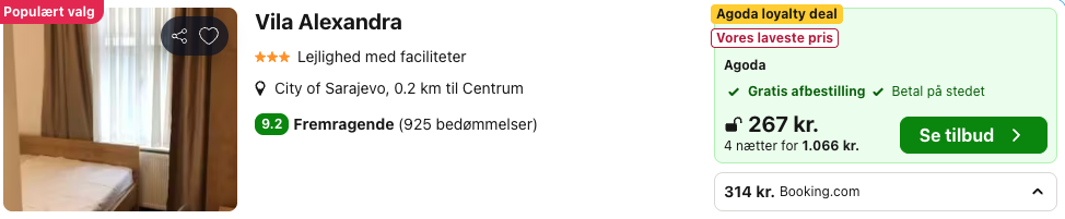 På vores flysøgemaskine har vi fundet billige flybilletter fra København til Sarajevo: