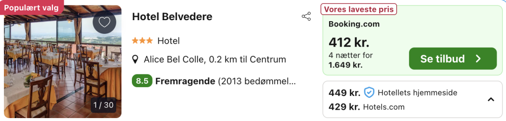 Hvis rejsen er med “Vis fly” og “Vis hotel” link, så er der tale om en sammensat rejse. Det vil sige at fly og hotel skal bestilles hver for sig. Prisen vi angiver vil dog være samlet for fly og hotel med mindre andet er angivet.