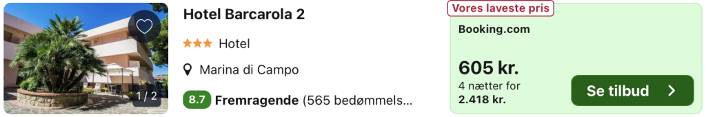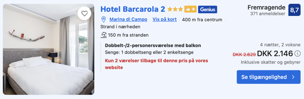 Vælg booking.com på trivago og log ind / opret en gratis bruger. Derved opnås den bedste pris!