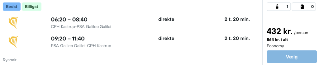 På vores flysøgemaskine har vi fundet billige flybilletter fra København til Pisa: