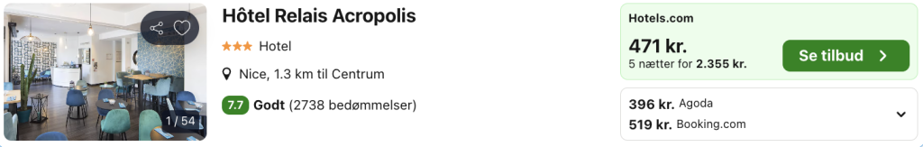 6 dage i Nice for kun 1.713,- per person inkl. fly og 3-stjernet hotel med god beliggenhed!