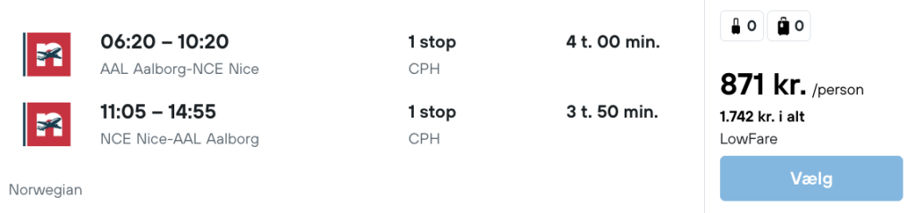 Flyprisen inkluderer kun en lille taske, men bagage kan tilkøbes.