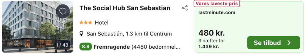 4 dages forlænget weekend i San Sebastián for kun 1.948,- per person inkl. fly og flot 3-stjernet hotel i hjertet af byen!