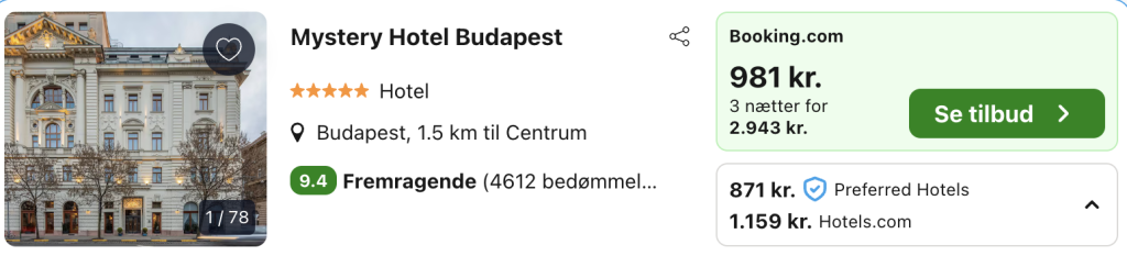 Bemærk: Husk at lade søgningen på fly og hotel blive helt færdig. Der kan være mindre prisforskelle på mobil og pc. Vælg “Vores laveste pris” på trivago, for at opnå den bedste pris på hotellet.