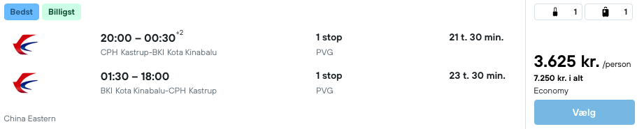 På vores flysøgningsmaskine har vi fundet billige flybilletter fra København til Borneo. Der er mange alternative datoer med samme billige priser. Typisk med mandage eller torsdage som rejsedage.