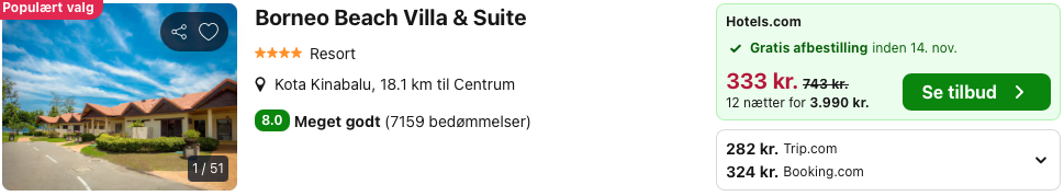 13 dage på Borneo for kun 5.317,- per person inkl. fly, bagage og flot 4-stjernet hotel med pool og fantastisk havudsigt!