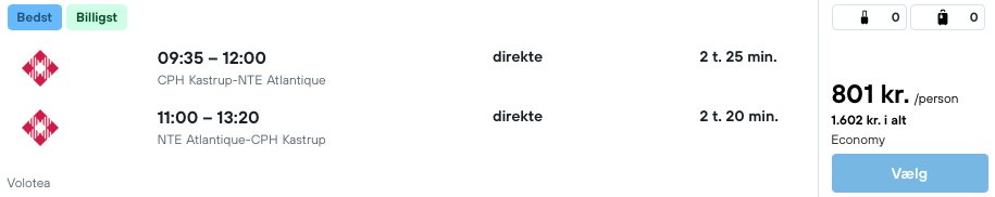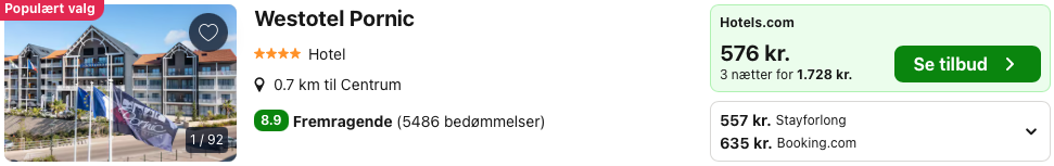 Hvis rejsen er med “Vis rejse” link, så er der tale om en pakkerejse, hvor fly og hotel bestilles på en gang.