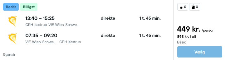 Flyprisen inkluderer kun en lille taske, men bagage kan tilkøbes.