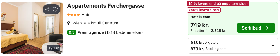 Bemærk: Lad søgningen på fly og hotel blive helt færdig. Der kan være mindre prisforskelle på mobil og pc. Undersøg med fordel, hvor det er billigst inden bestilling.