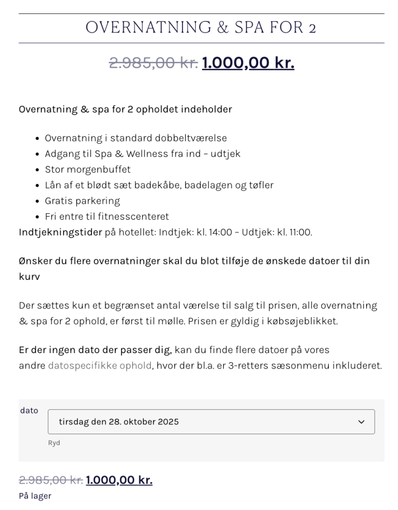 Overnatning og spa for 2 indeholder: