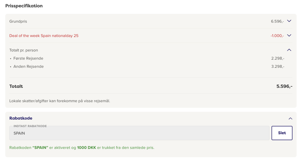 Med rabatkoden SPAIN får du 1.000,- i rabat per booking, når du booker en ny rejse hos Apollo. Gælder i afrejseperioden 22. oktober 2025 – 31. oktober 2026.