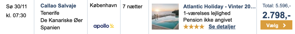 Hos Travelmarket og Apollo har vi fundet et godt tilbud fra København til Tenerife: