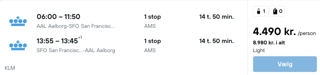 Hvis rejsen er med “Vis rejse” link, så er der tale om en pakkerejse, hvor fly og hotel bestilles på en gang.