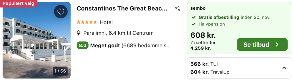 Hvis rejsen er med “Vis rejse” link, så er der tale om en pakkerejse, hvor fly og hotel bestilles på en gang.