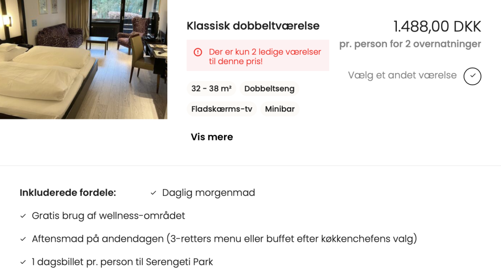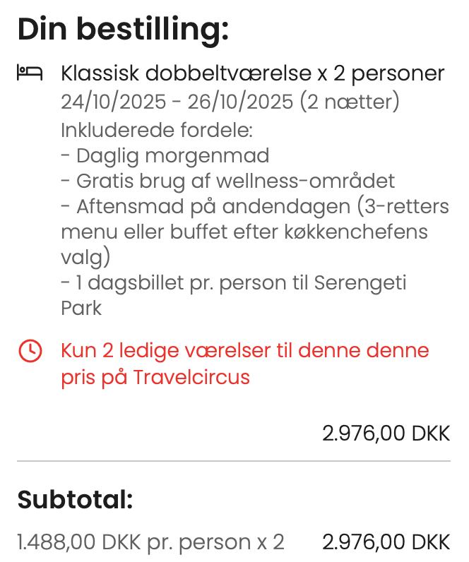 Vi har taget udgangspunkt i et ophold på et dobbeltværelse for 2 personer.